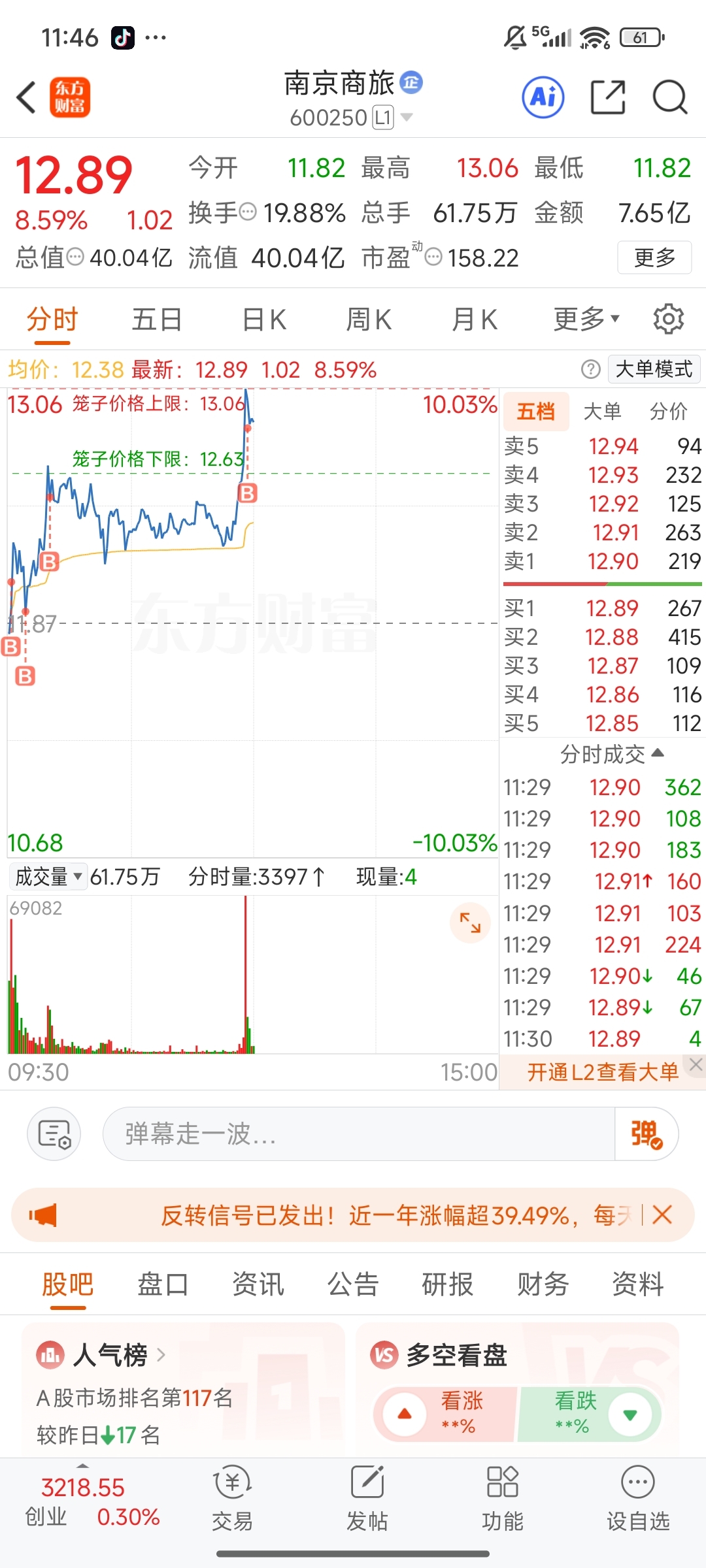 $南京商旅(SH600250)$ 兄弟们不要怕,我们广东人先上,打板解放你们!