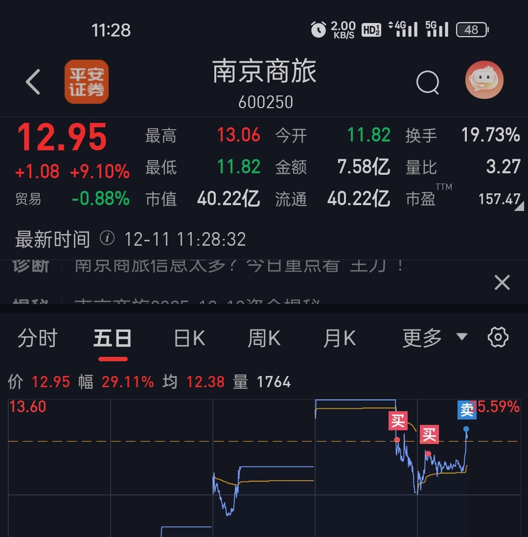 $南京商旅(SH600250)$ 留个底仓,感谢主力,留下的发财