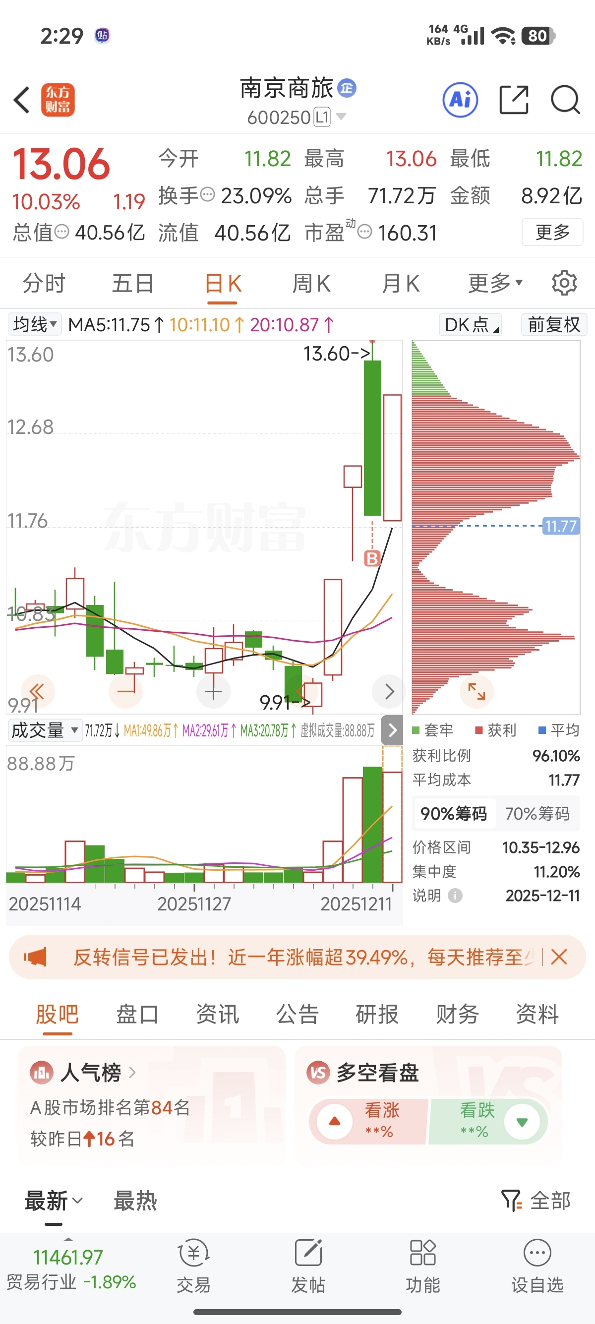 $南京商旅(SH600250)$ 我说白了,我说今天不卖就是今天不卖