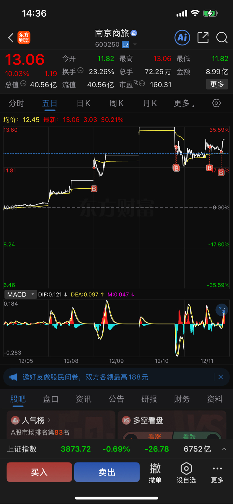 $南京商旅(SH600250)$ 此票有妖气,一股不卖,看中就死拿