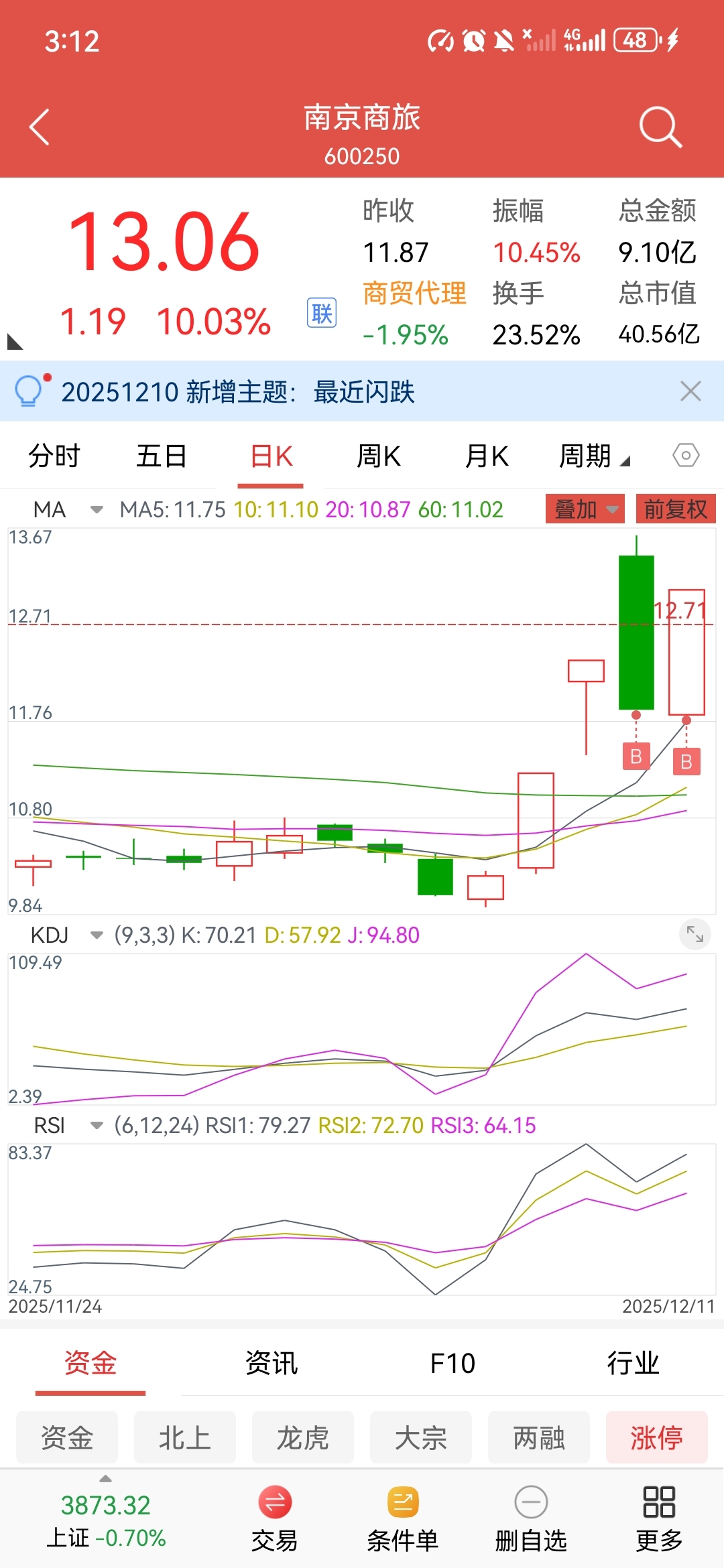 $南京商旅(SH600250)$ 一点微薄之力