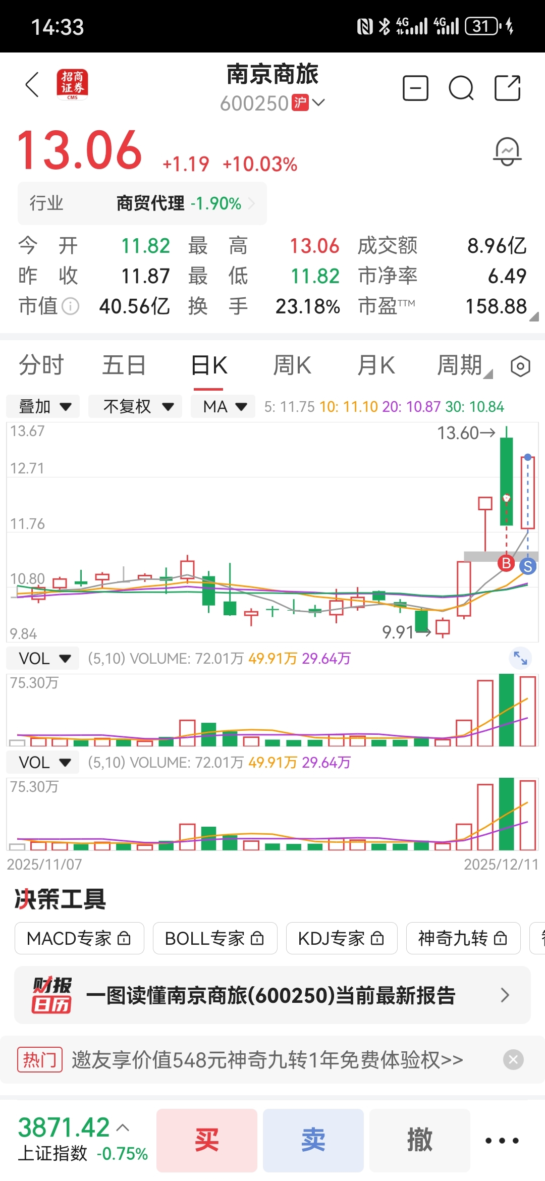 $南京商旅(SH600250)$ 撤了,祝留下的兄弟们发财