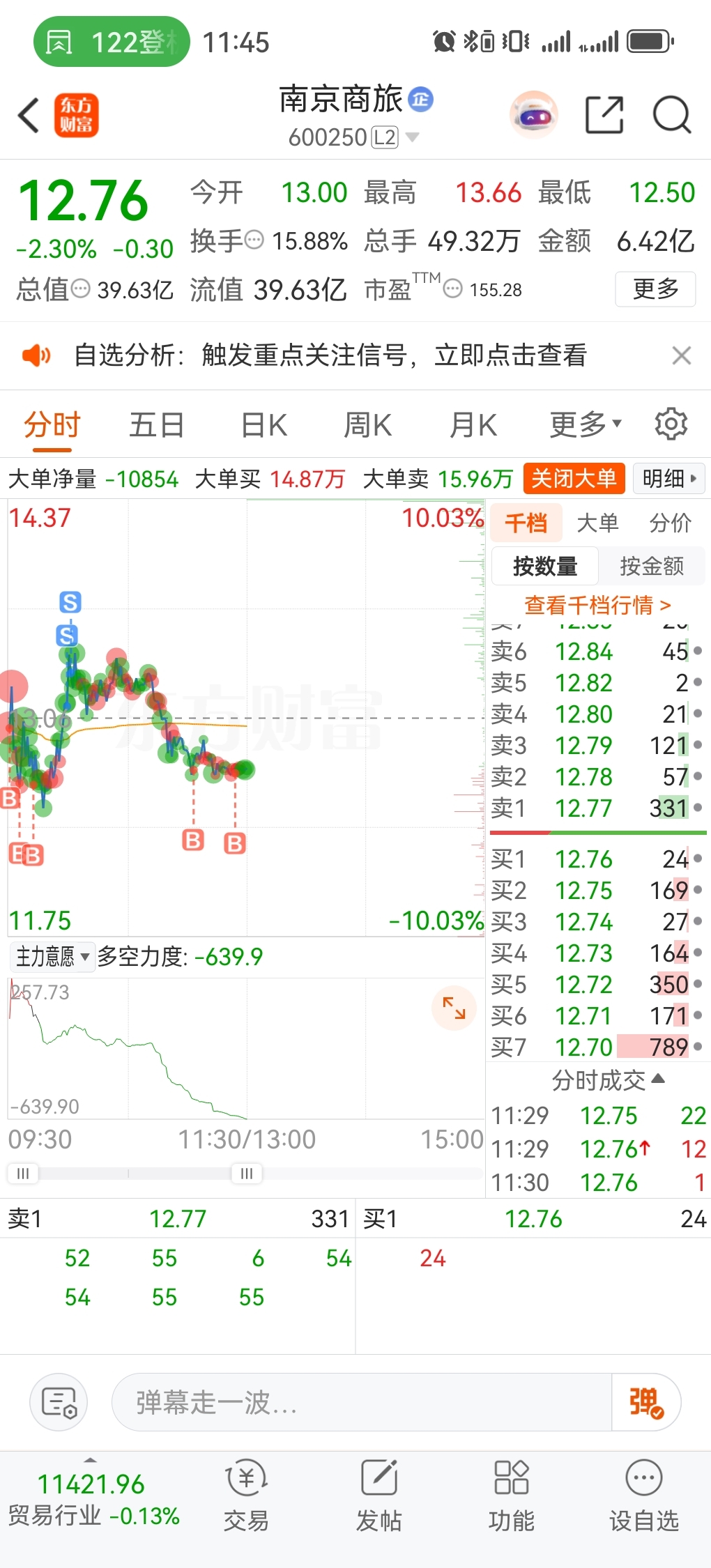 $南京商旅(SH600250)$ 做好高抛低吸,控制好仓位,降低成本,静待花开,赶飞机去了,希望落地打开账户是涨停