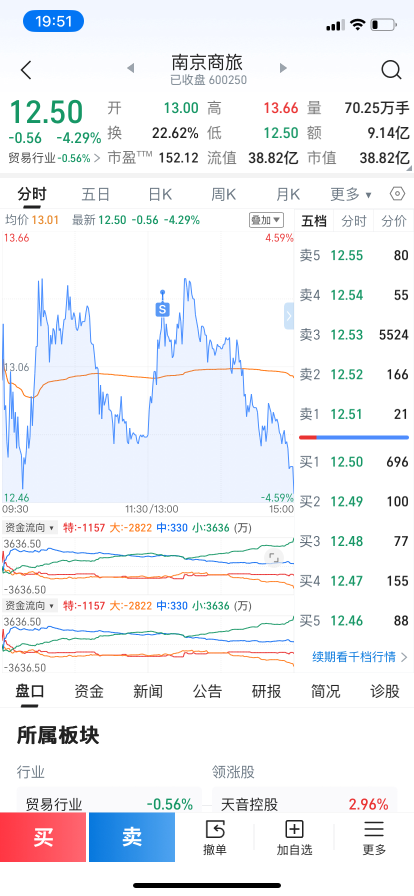$南京商旅(SH600250)$ 全部清仓,周一再看情况买入