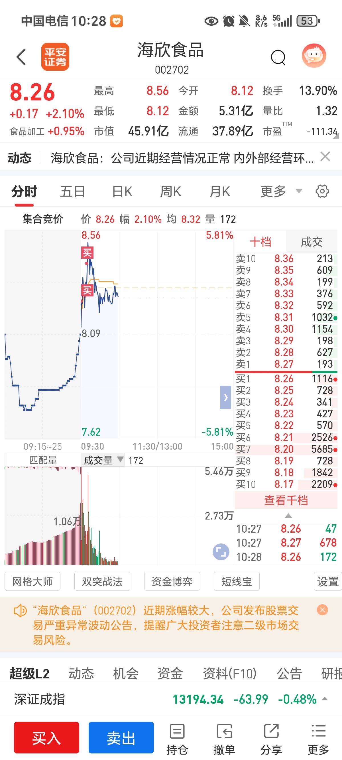 赚钱到亏钱跑路,出南京商旅,进海欣食品,可惜上周五没拿先手。