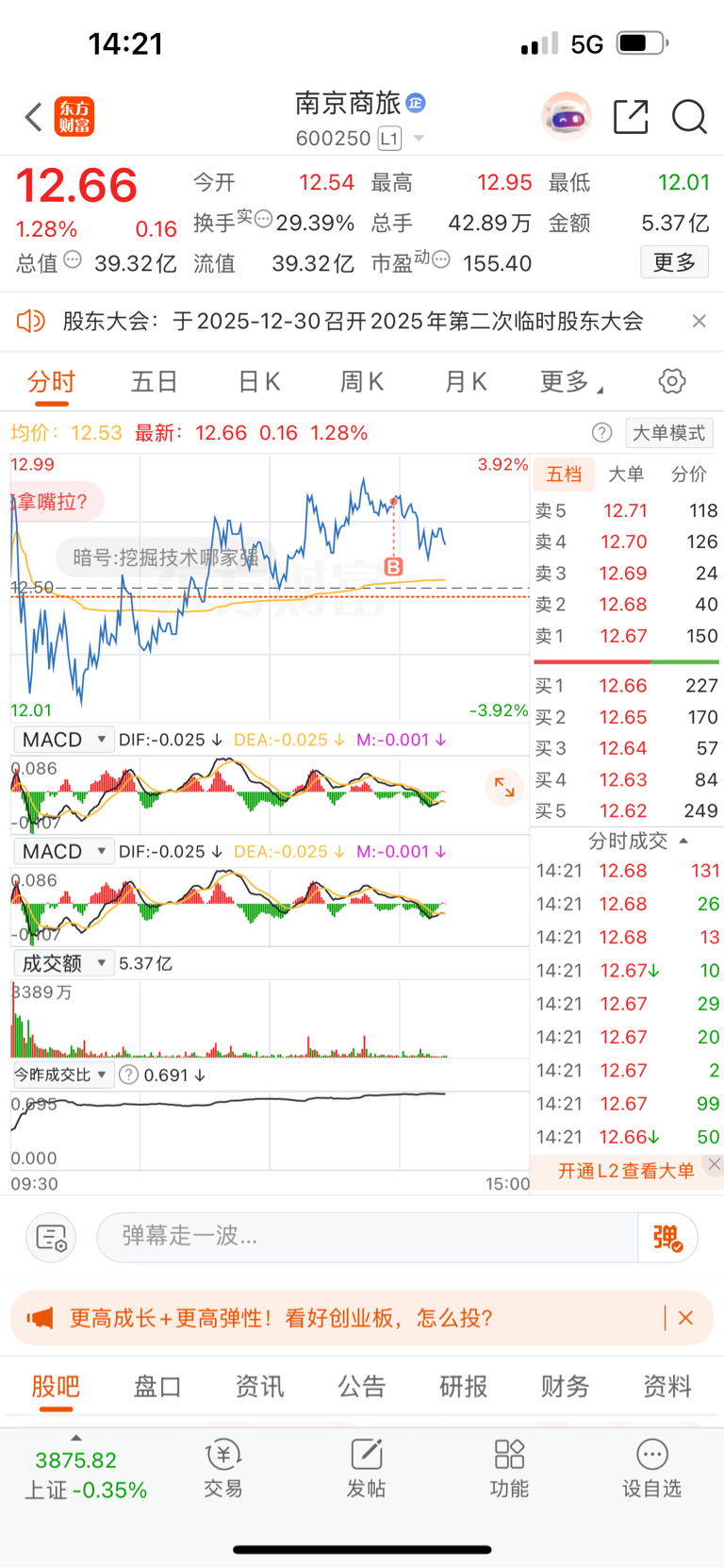 $南京商旅(SH600250)$ 点火啊调毛们,都挂条件单了跟上啊打出辨识度