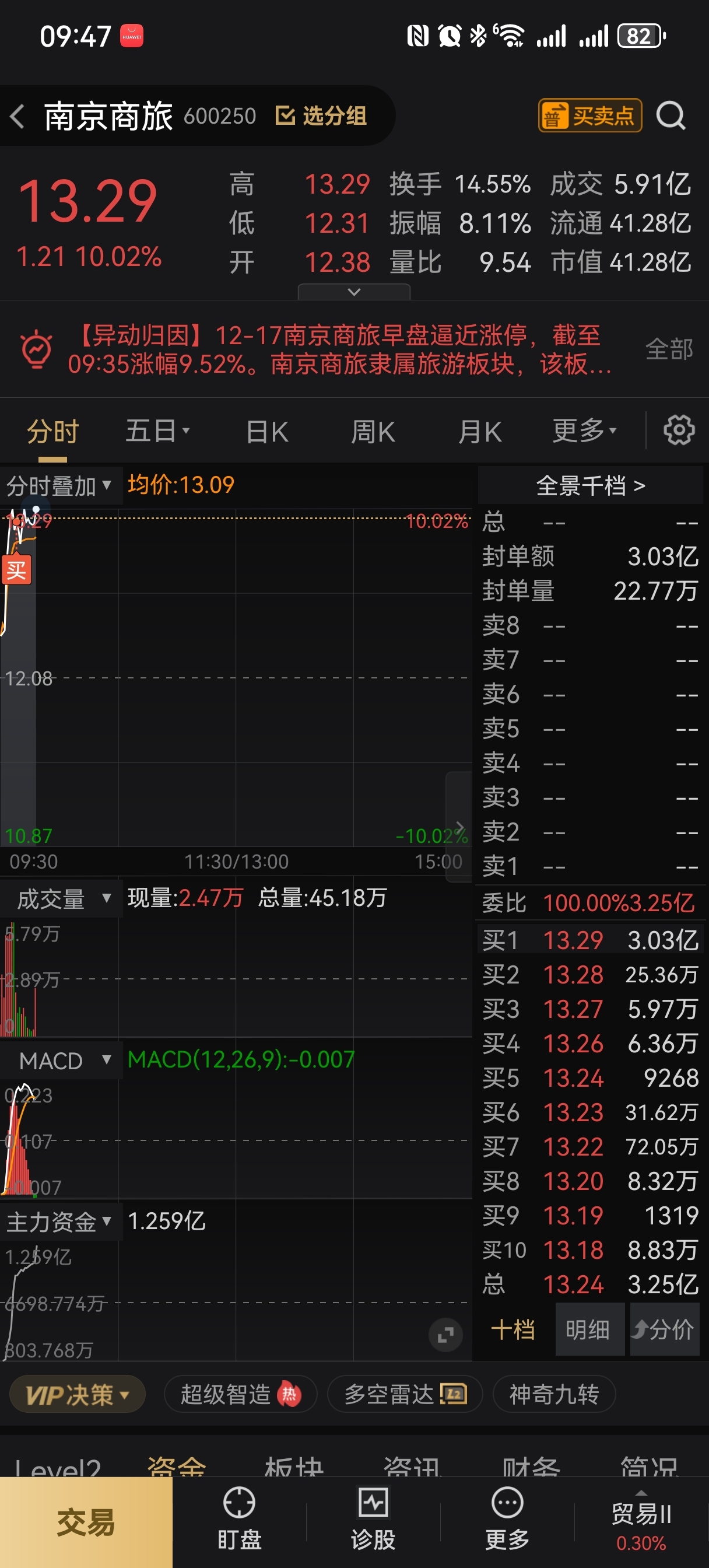 $南京商旅(SH600250)$ 上车干干干