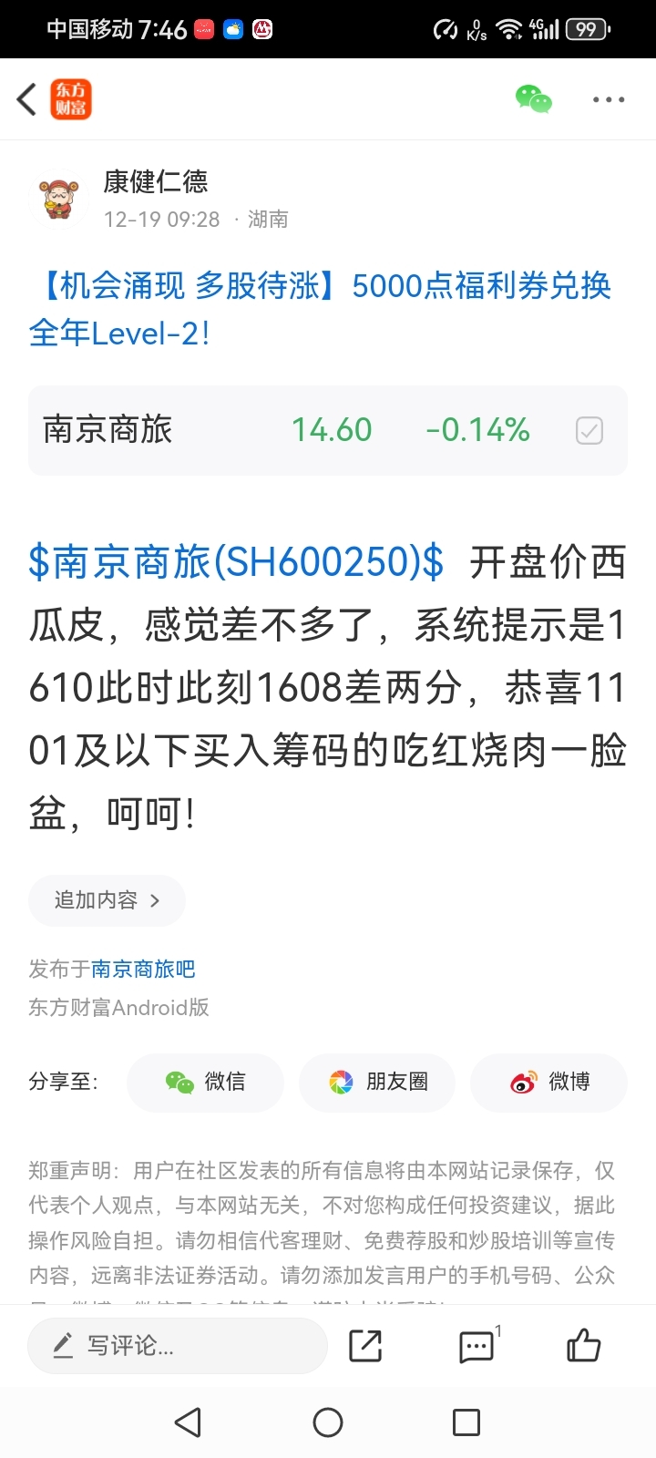 $南京商旅(SH600250)$ 老油条早上开盘就西瓜皮,侥幸啊!