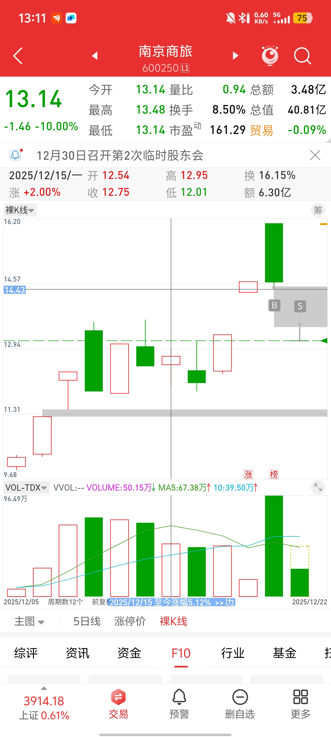 $南京商旅(SH600250)$ 天地板一刀我就给你剁了,12月最大败笔,