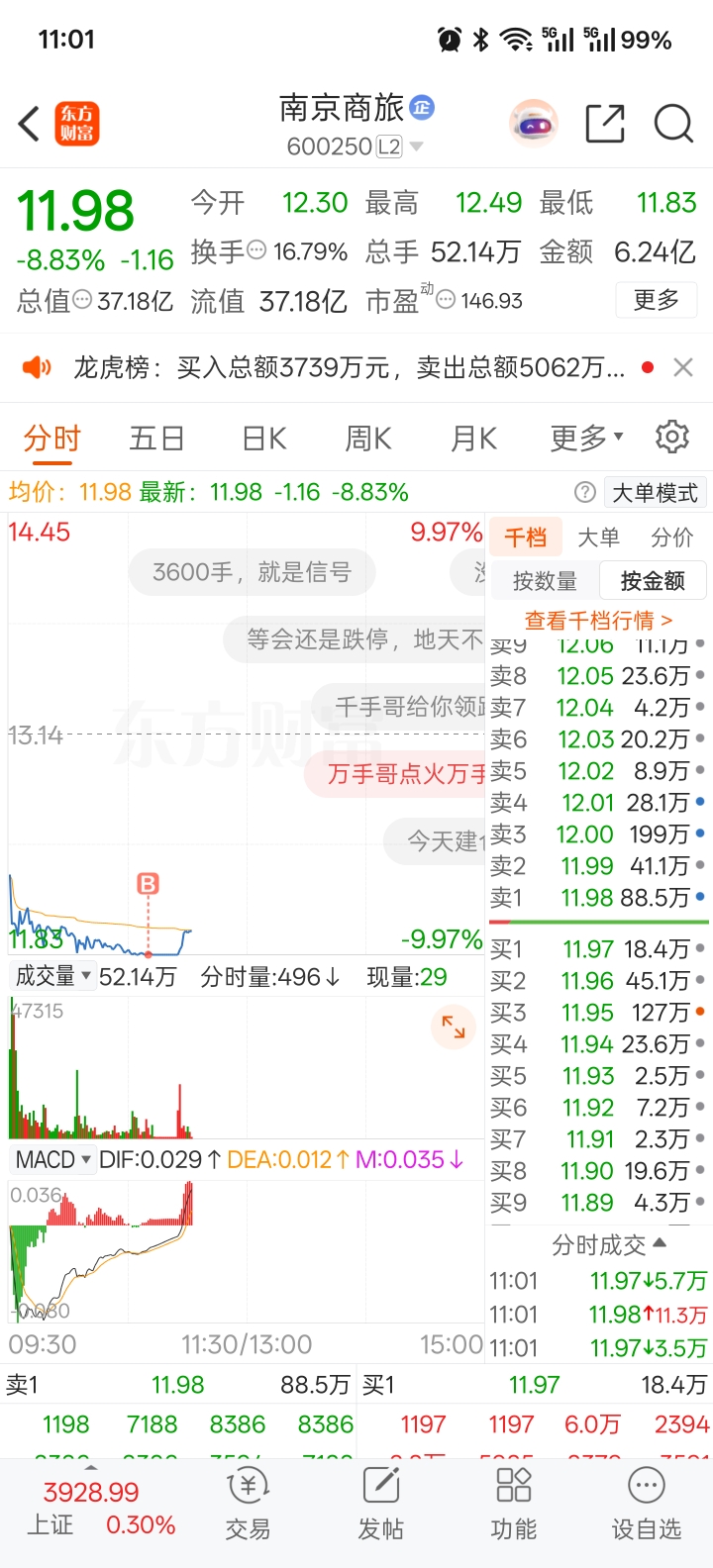 $南京商旅(SH600250)$ 跌停板买的,今天翻红就厉害了