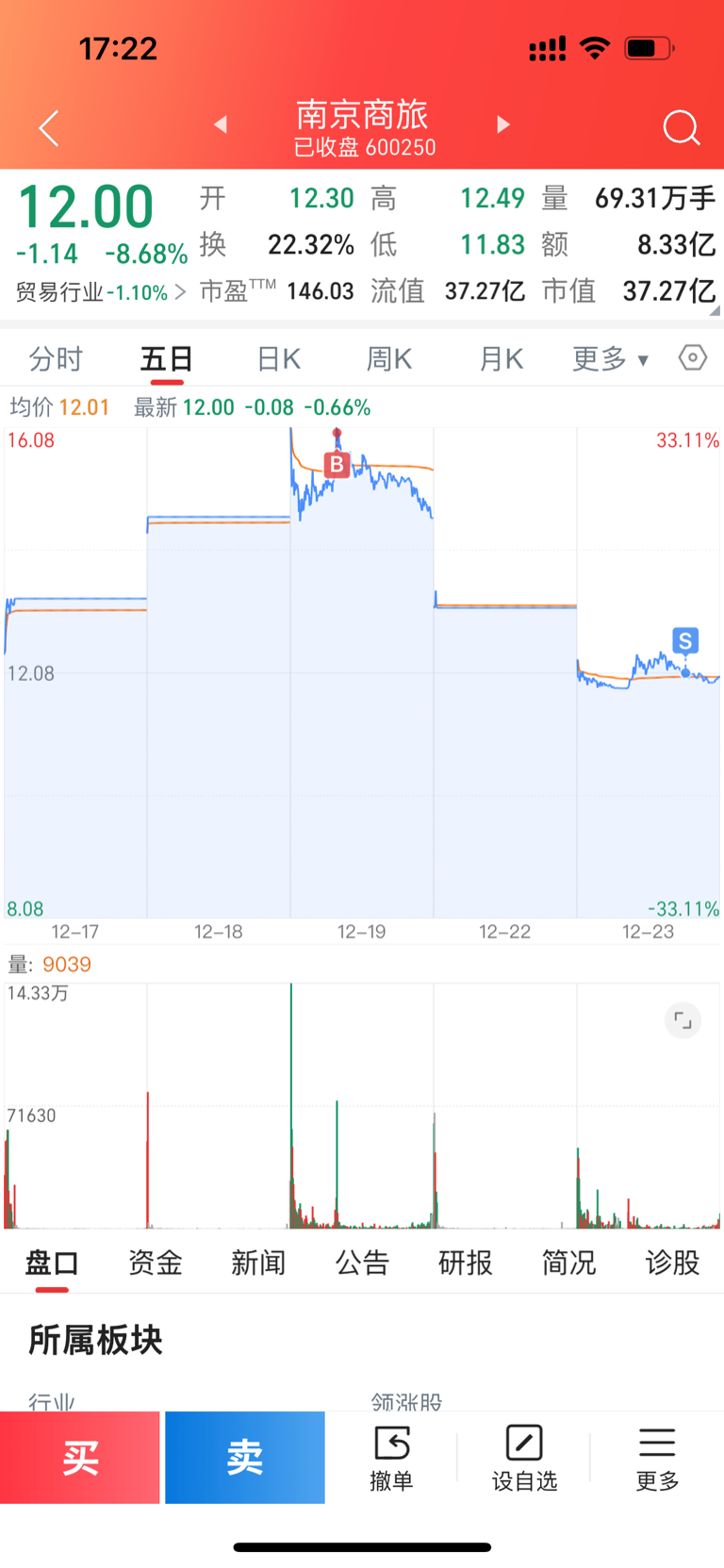 $南京商旅(SH600250)$ 割了,明天可以涨了