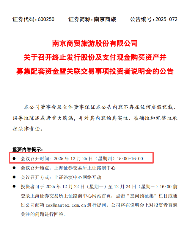 $南京商旅(SH600250)$ 下午3点有说明会,包括未来战略规划,珍惜12以下的筹码