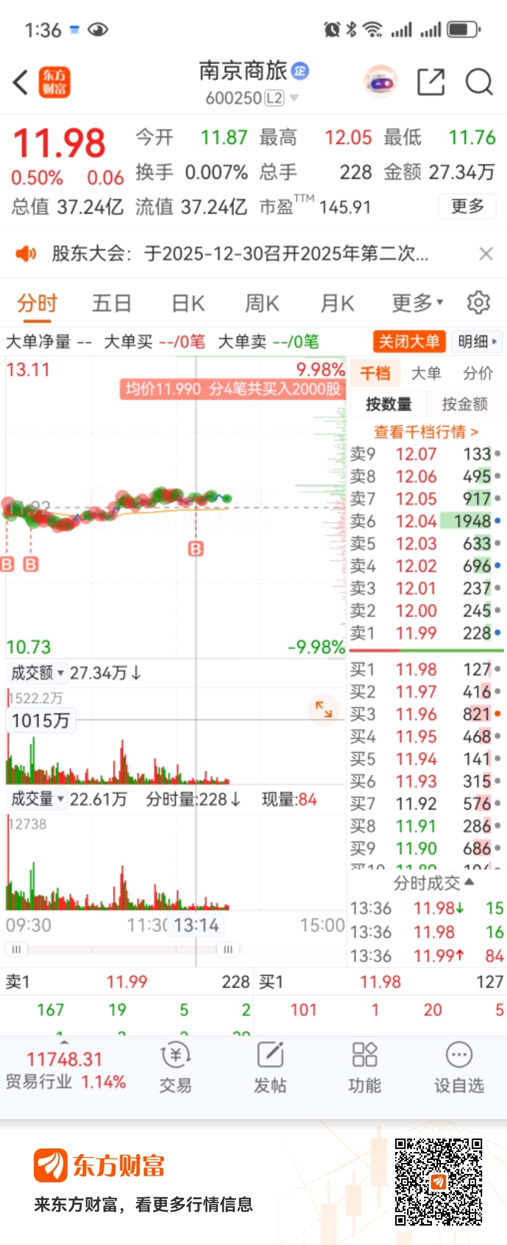 $南京商旅(SH600250)$ 继续加仓,不给主力拉升添堵
