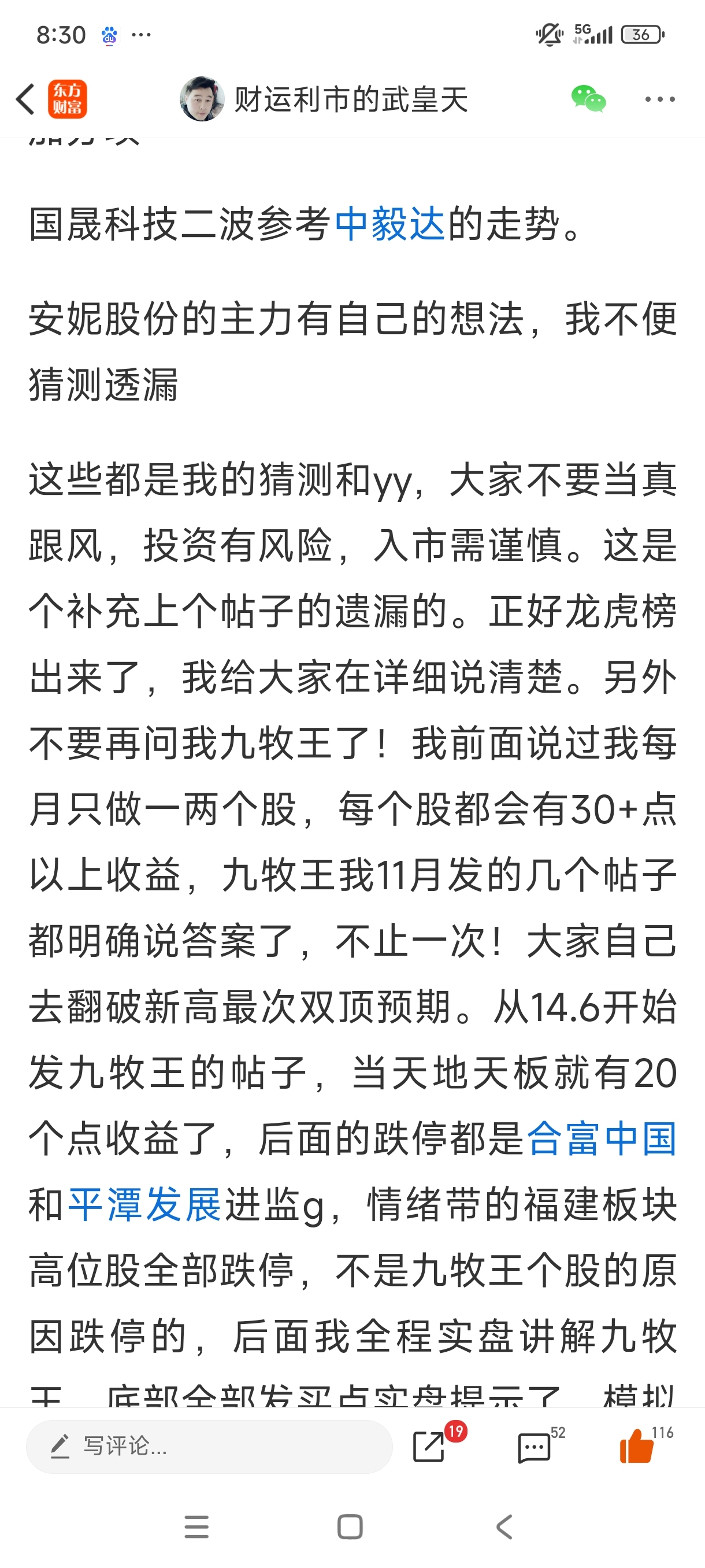 这两个股都是我前天凌晨发的帖,九牧王之后,我高产补发的给关注我的股友的红包帖,怎么样?够用不!