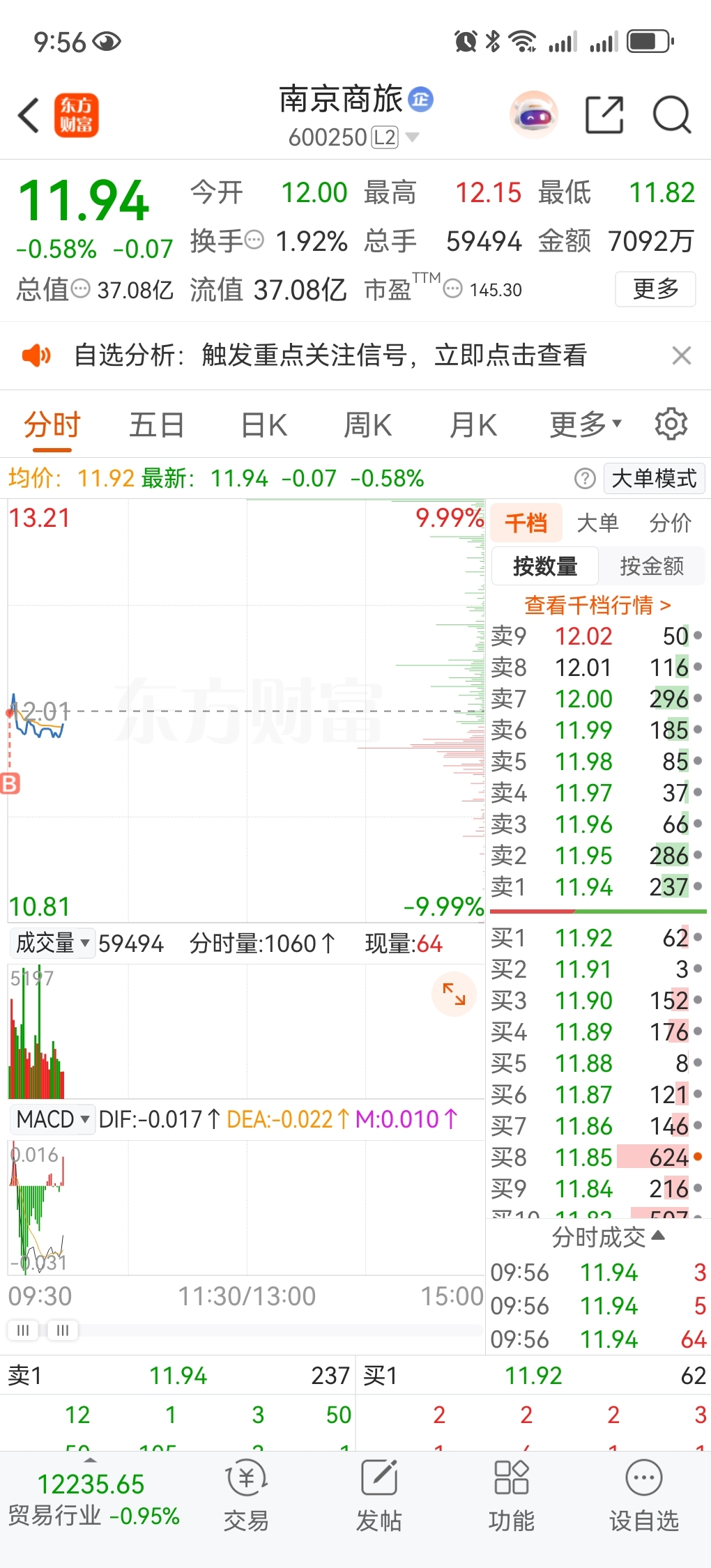 $南京商旅(SH600250)$ 主力,我们从航天出来,来抄底了