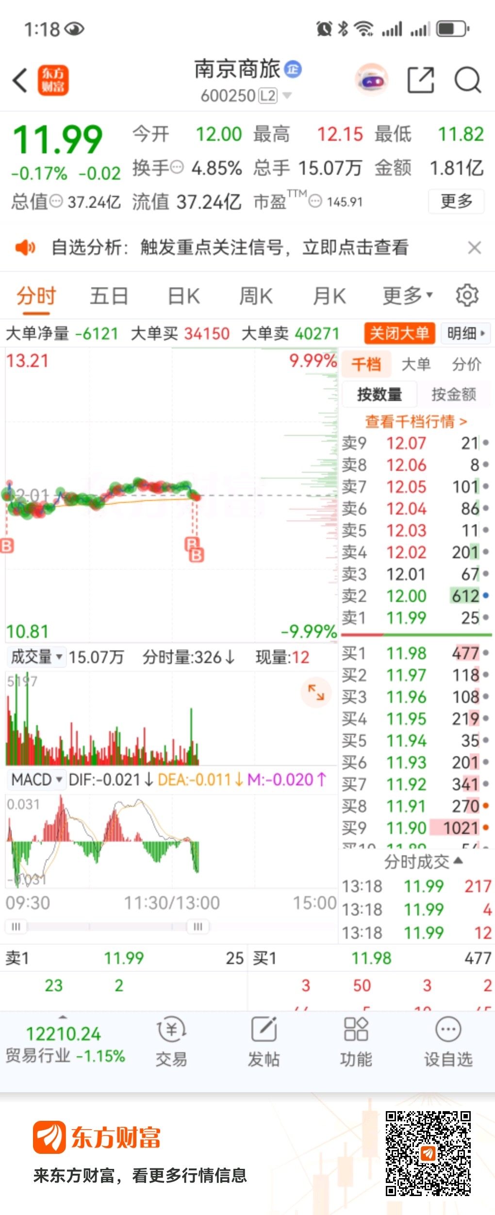 $南京商旅(SH600250)$ 怕你个嘚哈