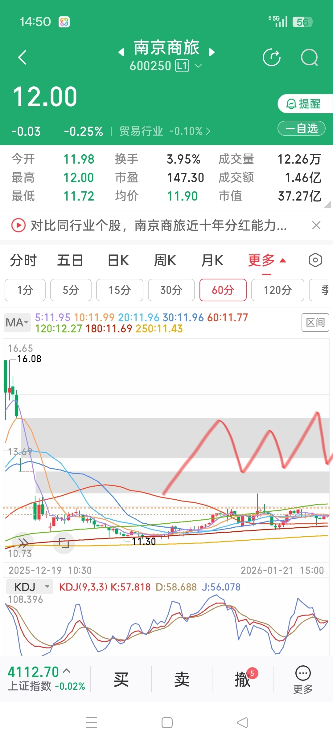 $南京商旅(SH600250)$ 六十分钟三底完成,可以啊,明天早上继续买入,
