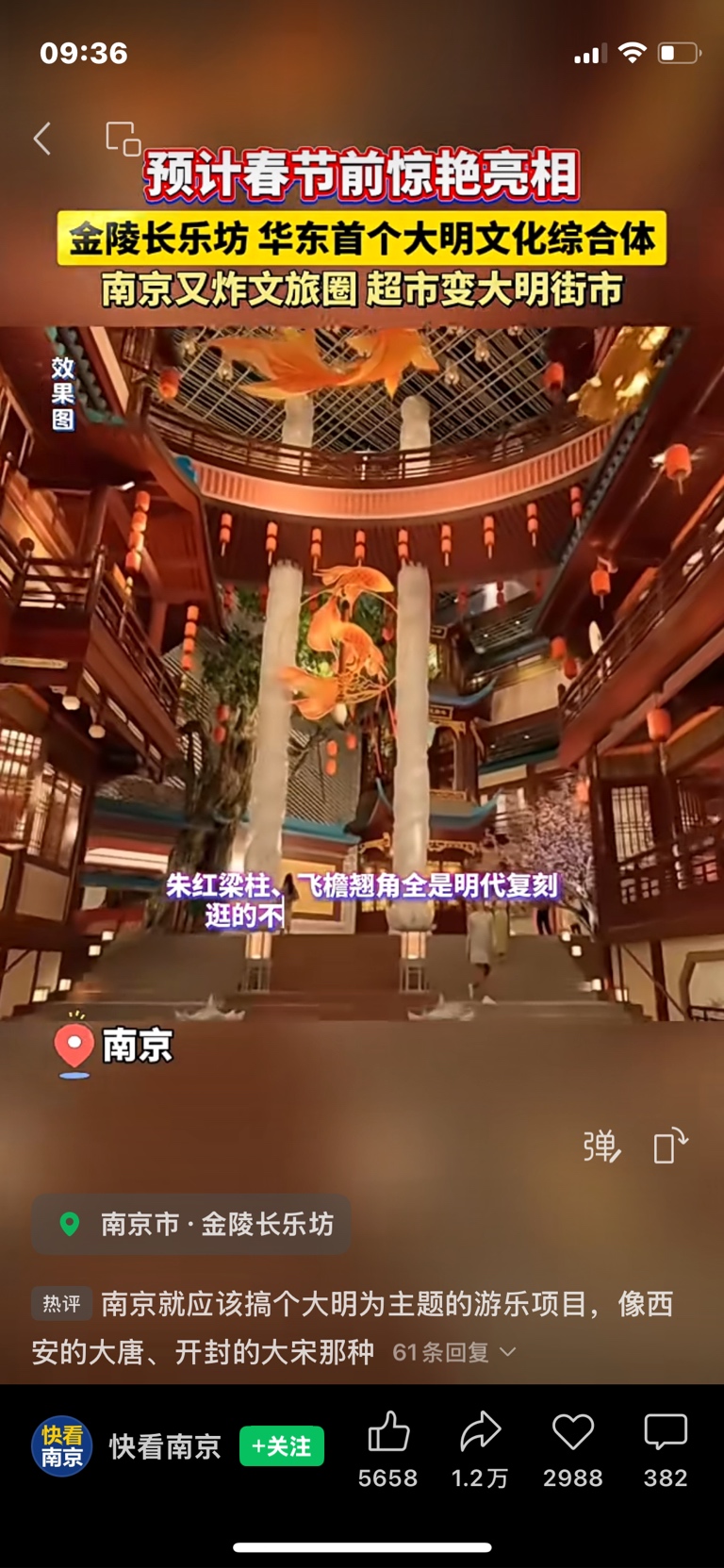 $南京商旅(SH600250)$ 大明文化综合体南京金陵长乐坊将于年前开业,南京旅游业大有可为,就看这帮高管用不用心去经营了。