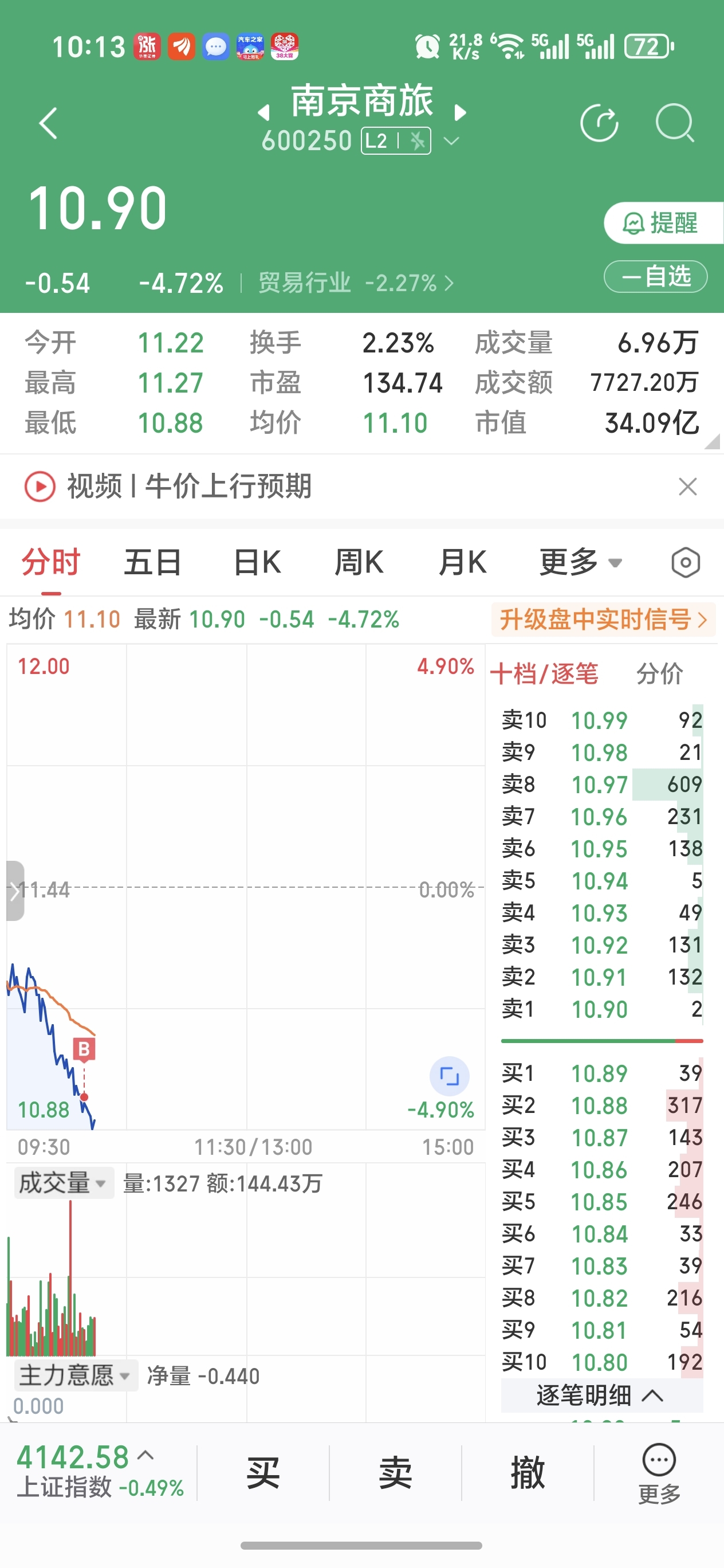 $南京商旅(SH600250)$ 别骂我傻,我就是不亏急得慌,你们多卖点把价格再往下砸让我再进点货