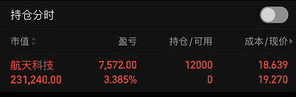 航天科技:今天集合竞价9点20分之前都是涨停板,9点20之后集合竞价上涨幅度开始减弱,从涨停板到8个点到5个点,接近25分的时候只有两个多点了,在9点24分的时候挂了个19的单子开盘18.63上了,开盘力度有点不及预期,但此股看好的是中线逻辑,目前位置也不高,短期先上再说,5日均线上方震荡问题都不大。
