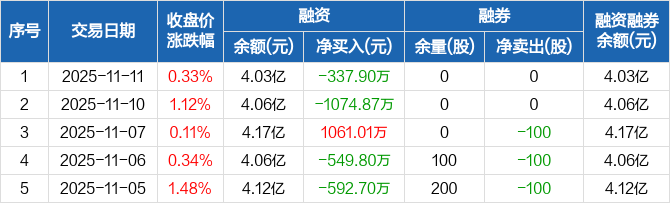 冠农股份:融资净偿还337.9万元,融资余额4.03亿元(11-11)
