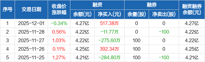 冠农股份:融资净买入517.38万元,融资余额4.27亿元(12-01)