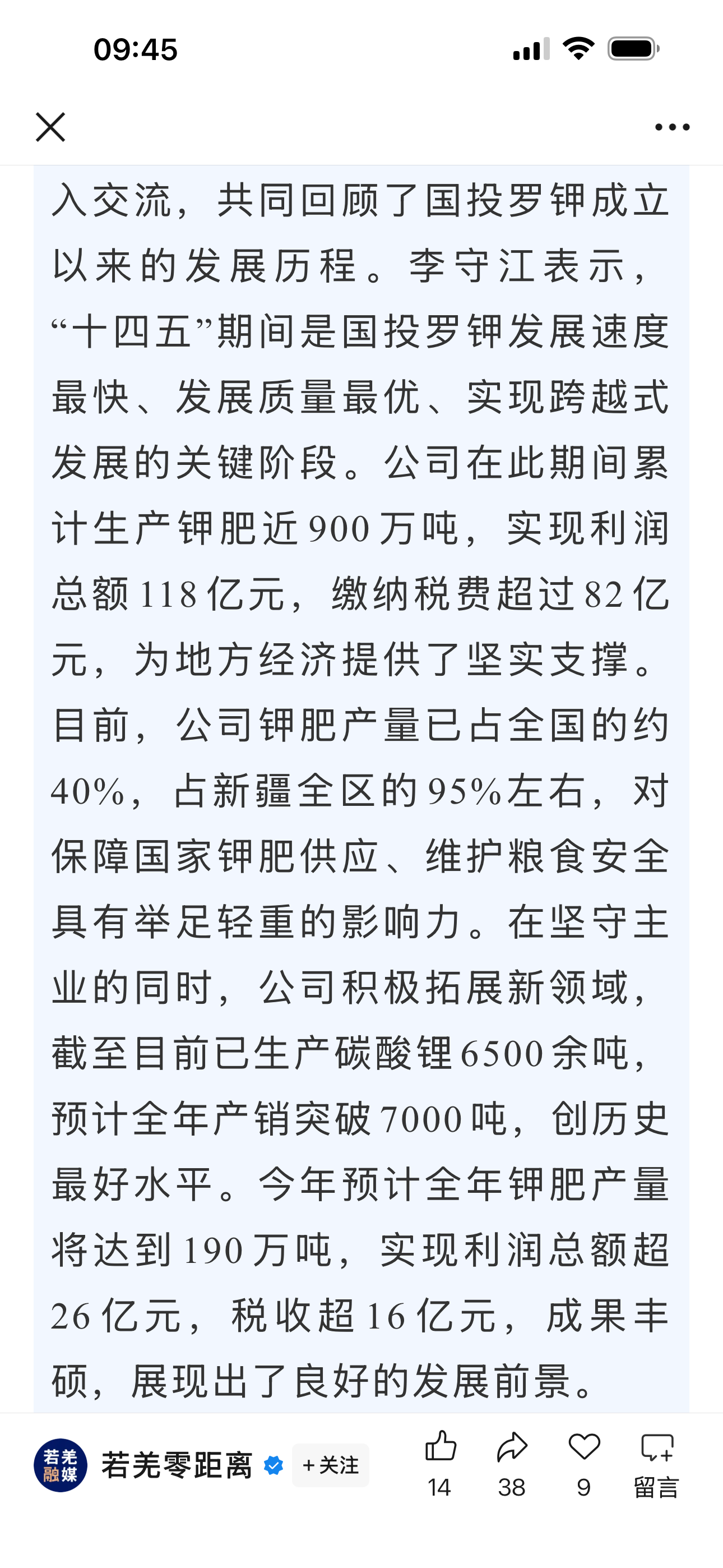 1、2025年国投罗钾预计钾肥产量达190万吨,利润总额超26亿元;