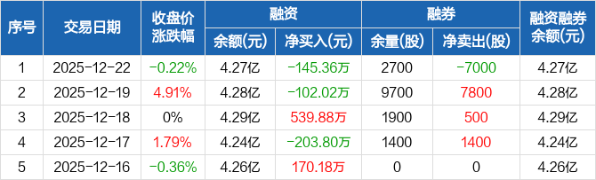 冠农股份:融资净偿还145.36万元,融资余额4.27亿元(12-22)