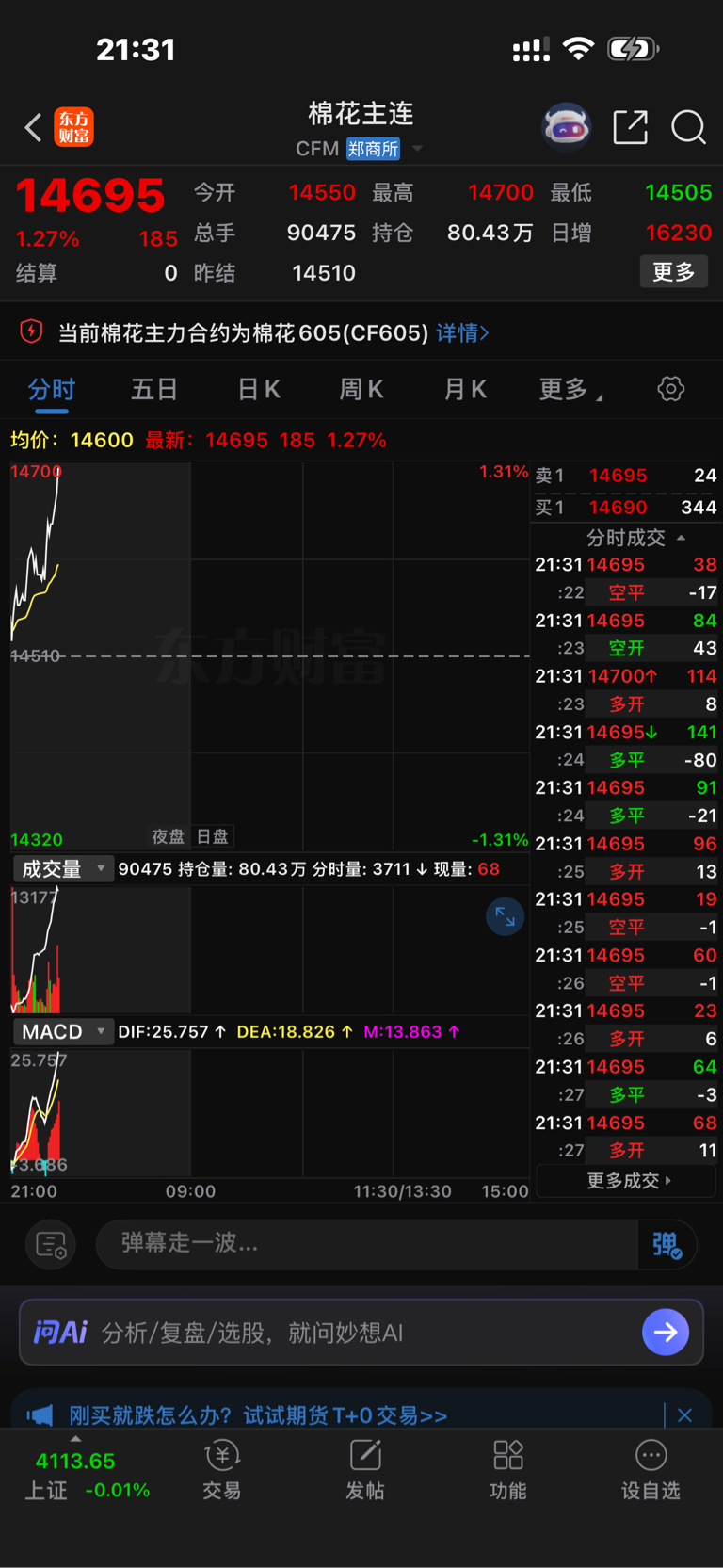 $冠农股份(SH600251)$ 晚上棉花主连大涨
