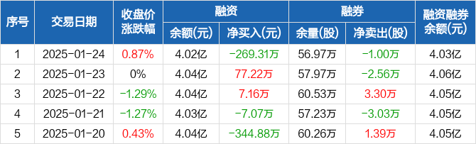 中恒集团:融资净偿还269.31万元,融资余额4.02亿元(01-24)