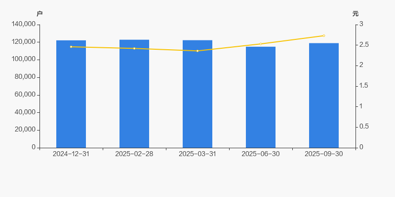 2024年12月31日至今,公司股东户数有所下降,区间跌幅为2.60%。2024年12月31日至2025年9月30日区间股价上涨10.98%。