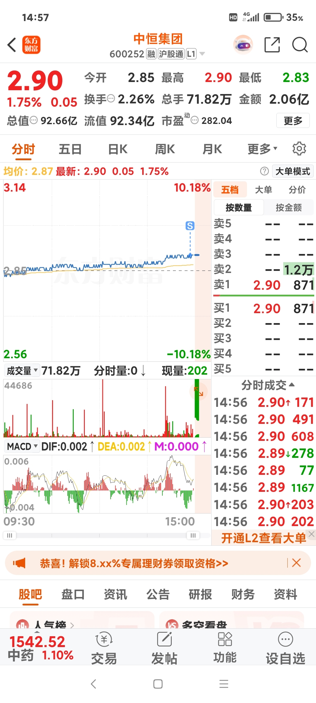 $中恒集团(SH600252)$ 俺受不了了!100清仓跑了!不玩了!