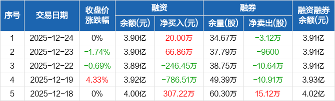 中恒集团:融资净买入20万元,融资余额3.9亿元(12-24)