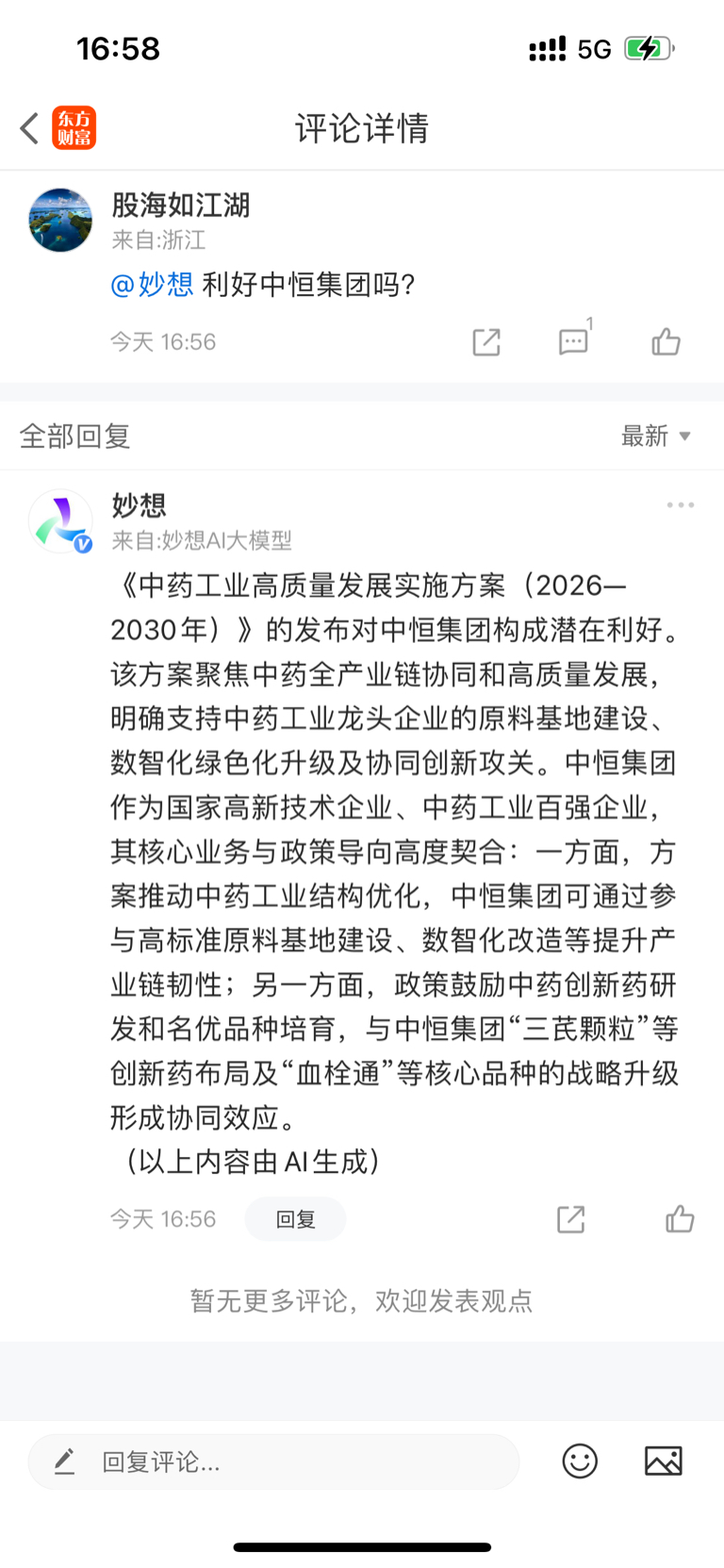 温馨提示: 1.根据《证券法》规定,禁止编造、传播虚假信息或者误导性信息,扰乱证券市场;2.用户在本社区发表的所有资料、言论等仅代表个人观点,与本网站立场无关,不对您构成任何投资建议。用户应基于自己的独立判断,自行决定证券投资并承担相应风险。《东方财富社区管理规定》