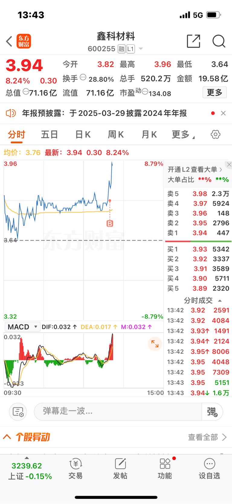 $鑫科材料(SH600255)$ 3.8追一把