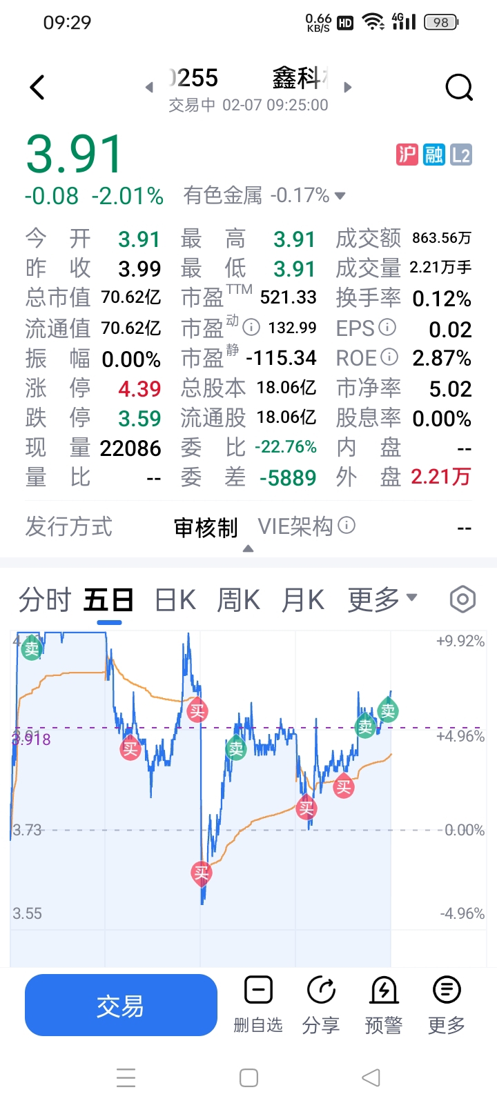 $鑫科材料(SH600255)$ 低买高卖,今天又是买点