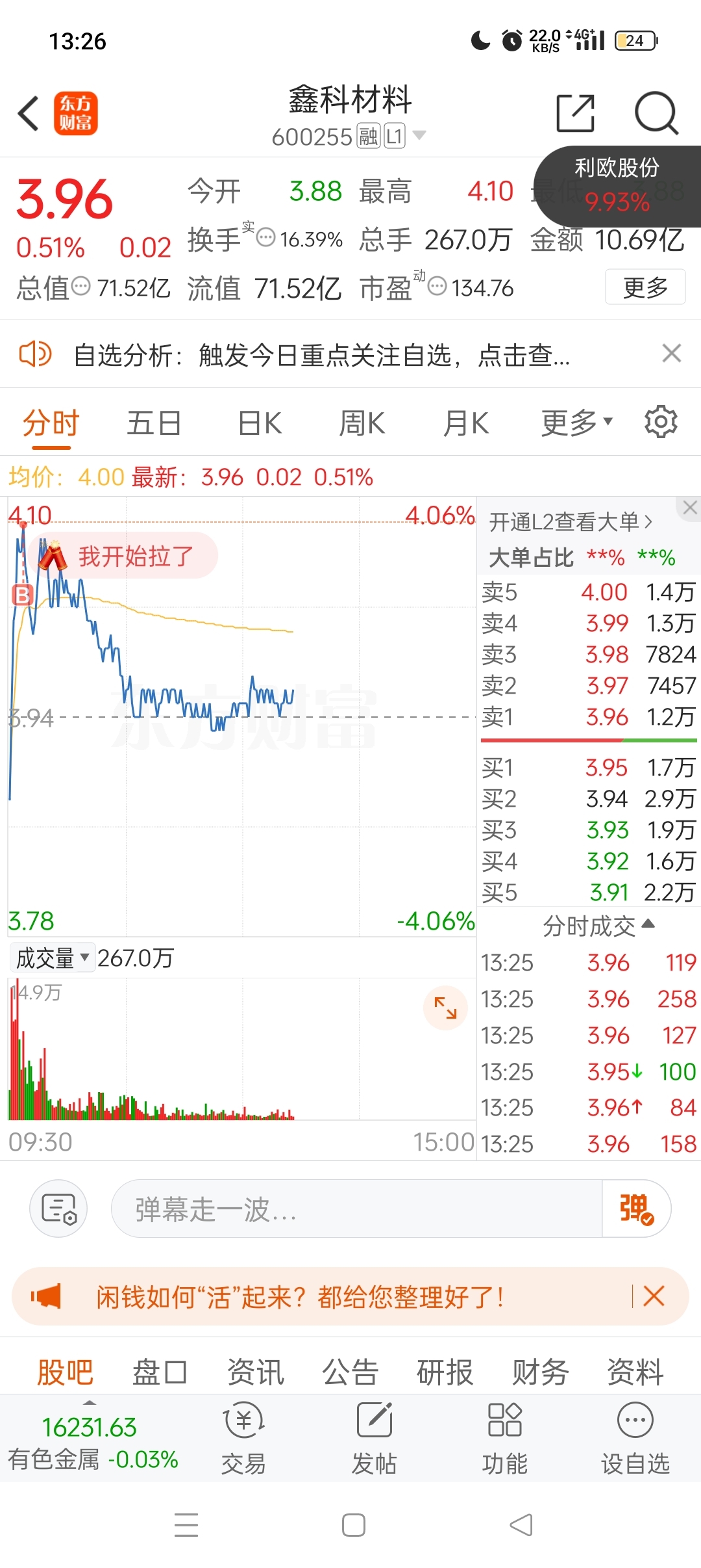 $鑫科材料(SH600255)$ 说实话,今天挺失望的