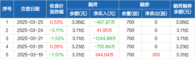鑫科材料:融资净偿还497.87万元,融资余额3.06亿元(03-25)