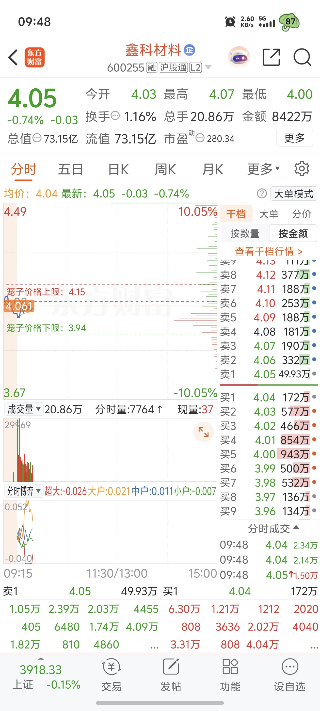 $鑫科材料(SH600255)$ 不好意思大家,被我的成本线压住了