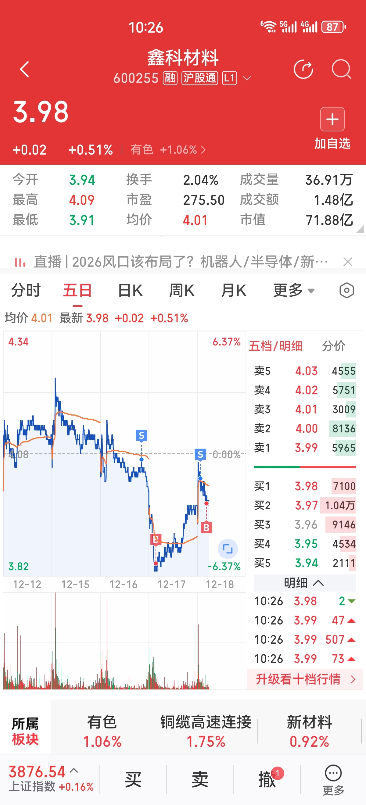 $鑫科材料(SH600255)$ 我就不信了 你啥时候拉升我啥时候走