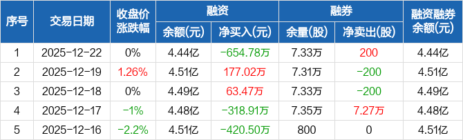 鑫科材料:融资净偿还654.78万元,融资余额4.44亿元(12-22)