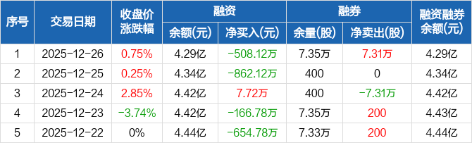 鑫科材料:融资净偿还508.12万元,融资余额4.29亿元(12-26)