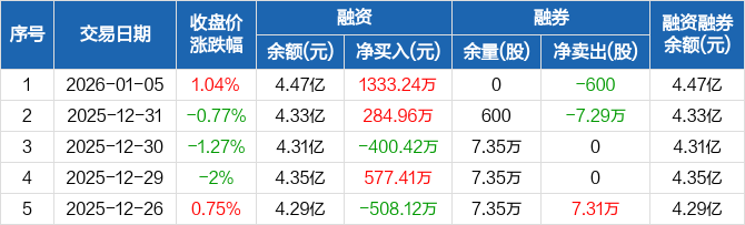 鑫科材料:融资净买入1333.24万元,融资余额4.47亿元(01-05)