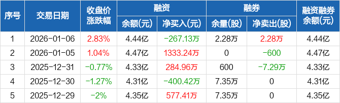 鑫科材料:融资净偿还267.13万元,融资余额4.44亿元(01-06)