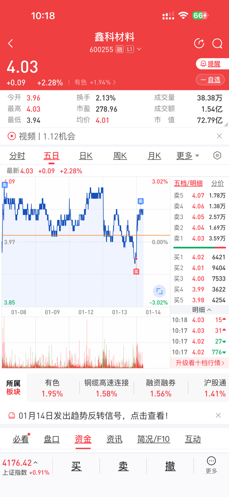 $鑫科材料(SH600255)$ 做个差价,择机继续出,哥们的科大讯飞赚了近40个w了