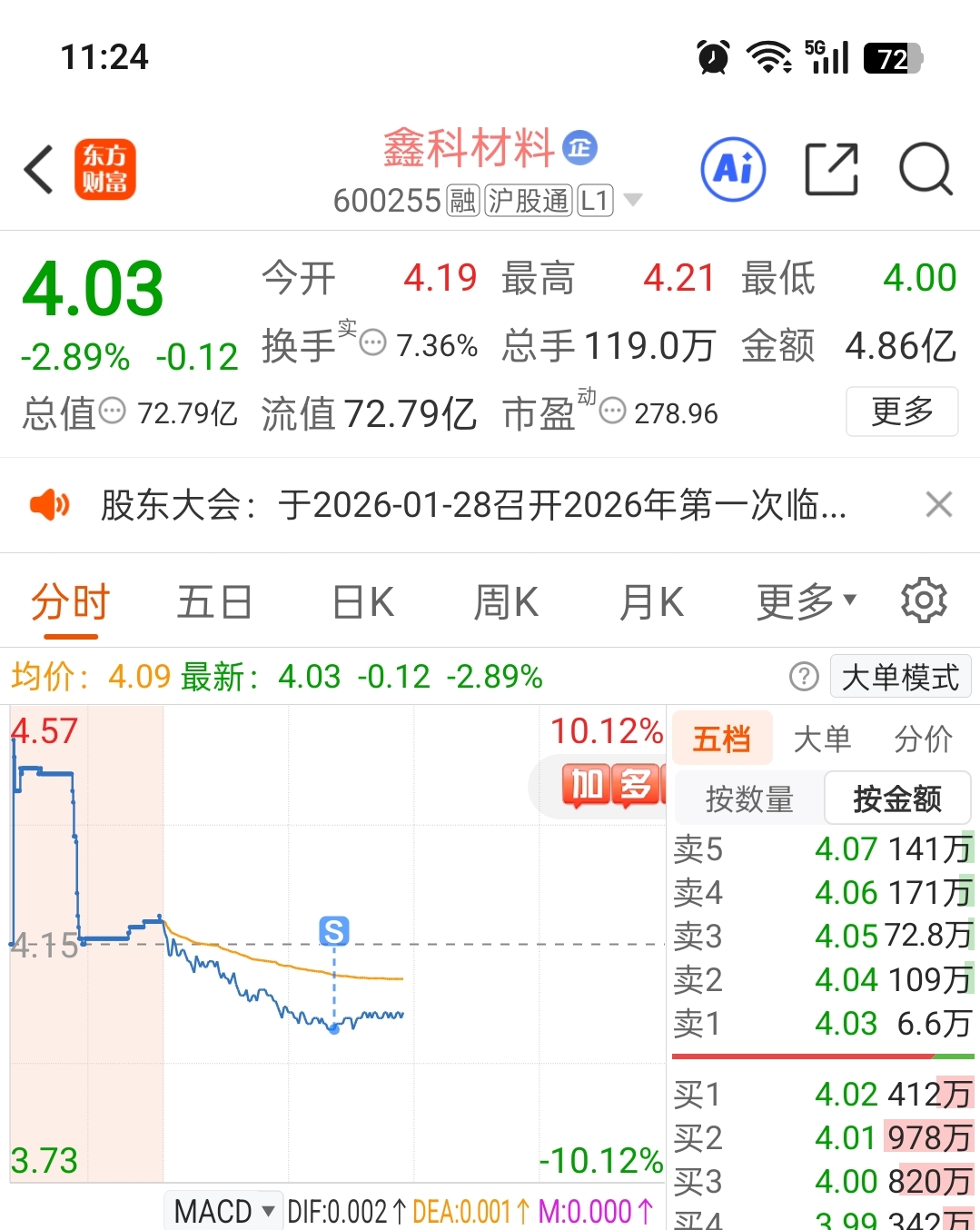 $鑫科材料(SH600255)$ 买搞成了卖,给个机会我再买回去吧