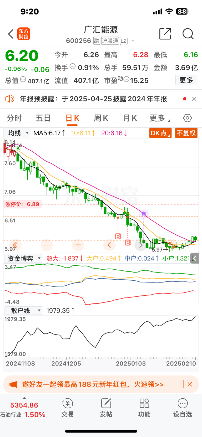 $广汇能源(SH600256)$ 我劝你善良,再往下我可以补仓了!