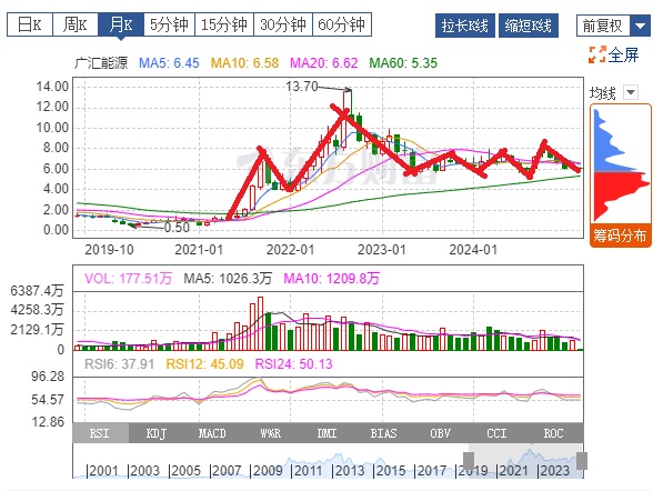 广汇能源已经横盘两个多月了,探底将要结束,放心买进持仓。能源股属于典型的周期性股票,看月K线技术指标操作就行,适合没时间看盘人士操作。