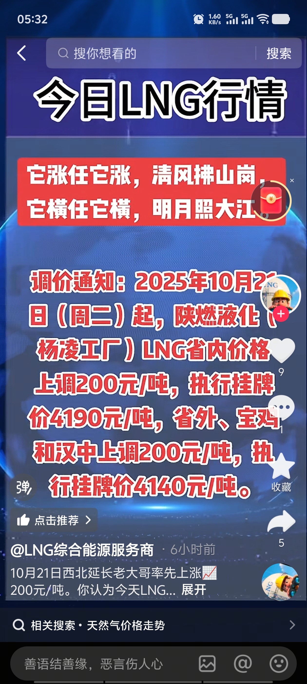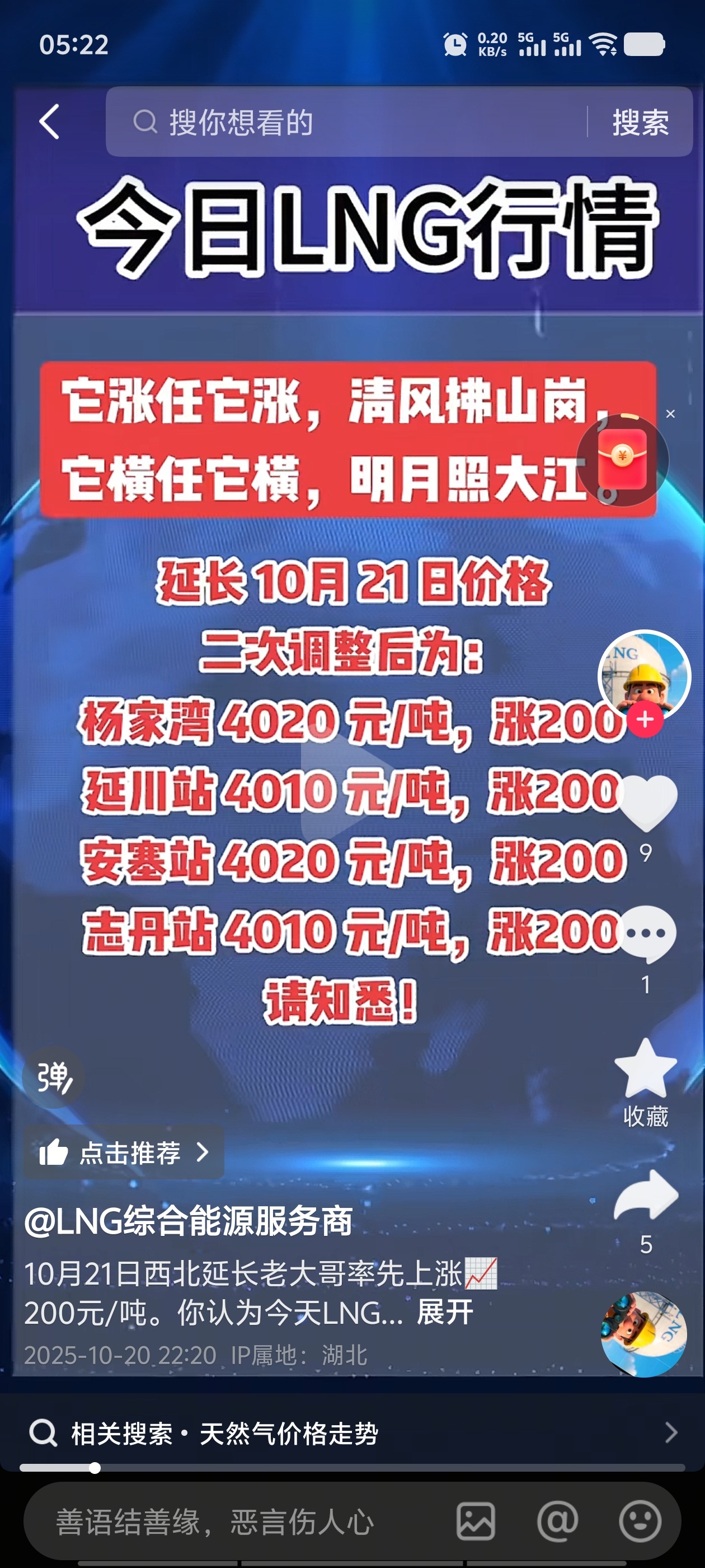 $广汇能源(SH600256)$ $广汇能源(SH600256)$ 西北主产区天然气价格近期连续四涨,17日,18日,20日,21日分别涨价20元,40元,80元,200元,基础价格已由3700多涨到4000多。目前看随着温度下降还有上涨趋势。广汇能源你的自产天然气和江苏启东码头储运大罐里的天然气都空了吗?