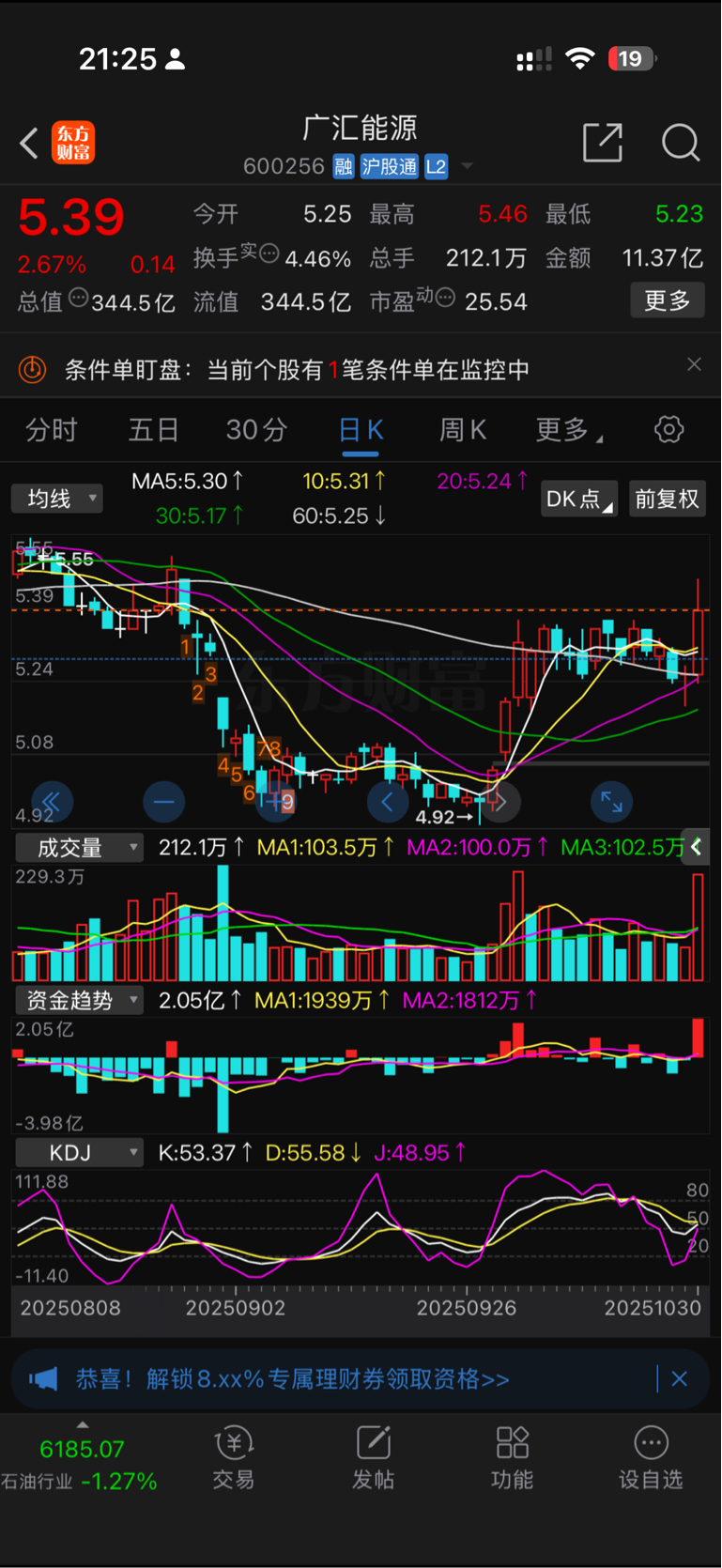 $广汇能源(SH600256)$ 按照走势来说,今天突破前高,上升压力比较小。但是根据财报来说,又是一大利空…再根据煤炭价格来说,最近煤炭价格触底企稳,后面看反弹。今天进来的资金到底是来博业绩的还是什么啊?